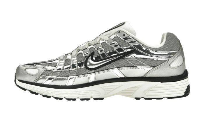Le Nike P-6000 argento metallizzato sono ispirate alle Air Pegasus del 2006 e le reinterpretano con dettagli dell’era spaziale dandogli un look futuristico.