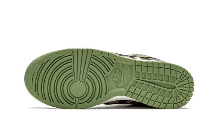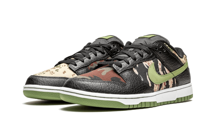 La Nike SE Black Multi-Camo (Crazy Camo) presenta un look spaiato attraverso una base con diverse stampe mimetiche. Ci sono inserti in pelle nera, un’intersuola bianca e uno swoosh centrale verde per abbinare la suola.