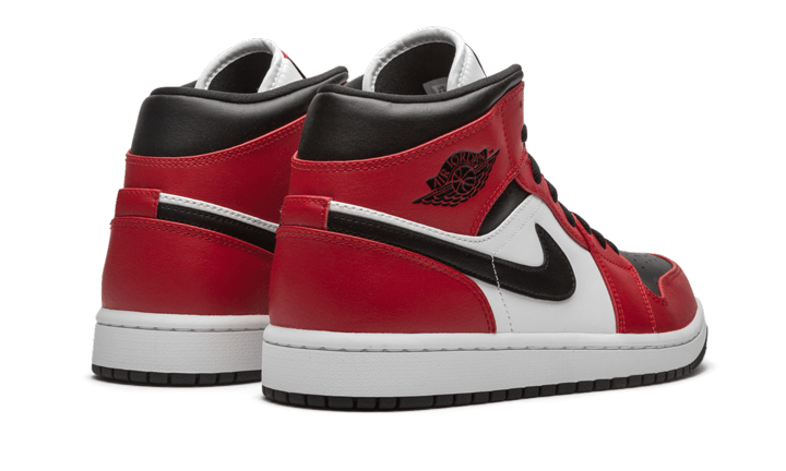 La Air Jordan 1 Mid Chicago riprende quasi tutti i codici del colore originale. L’unica modifica riguarda il toebox in pelle, che ora รจ nero. Troviamo gli inserti rossi, cosรฌ come i pannelli laterali e la midsole di colore bianco. Il swoosh e i lacci neri completano questa variazione.
