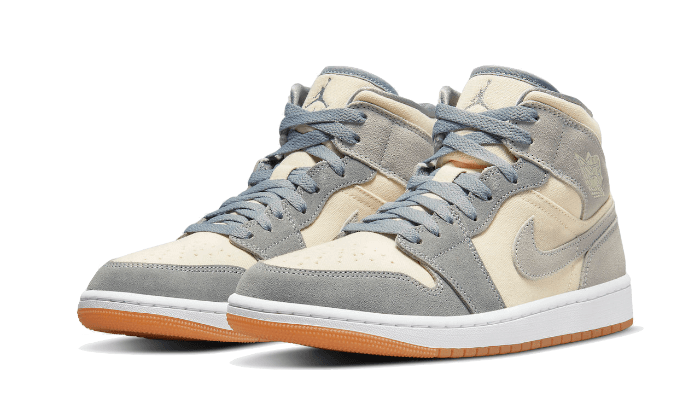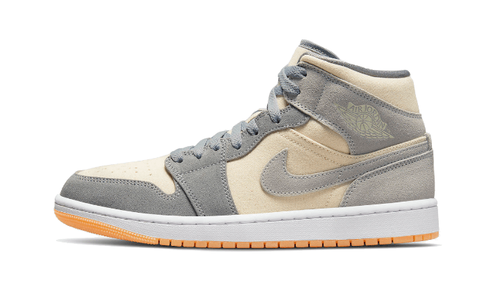 Lร  Air Jordan 1 Mid Particella di latte di cocco grigio presenta una composizione piuttosto interessante con un’alternanza di pannelli di tela beige e in Grey Svezia. รˆ una suola bianca a due color e gum perfettamente design.