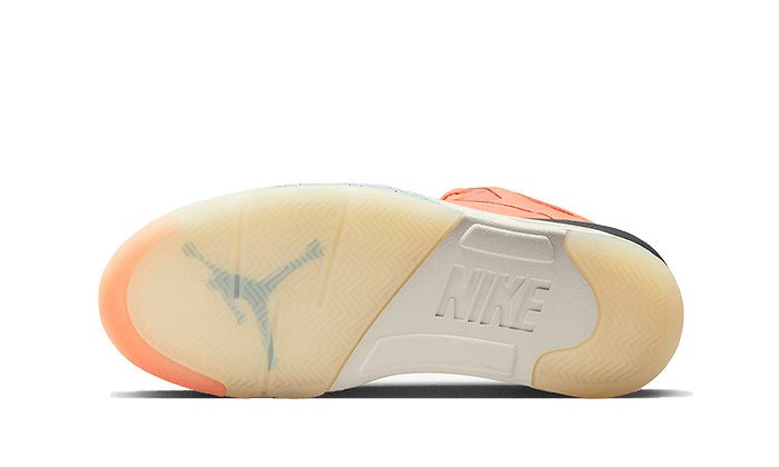 La Air Jordan 5 DJ Khaled Crimson Bliss presenta una base in pelle rosa salmone, arricchita dal fedele TPU cage. Sul tallone, troviamo l’iscrizione “We The Best”, che fa riferimento allโetichetta musicale creata dal DJ americano. Una fodera blu cielo satinata si abbina all’effetto shark presente sulla suola, mentre un accento in bianco rotto sulla midsole perfeziona il design.