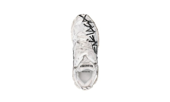 Le iconiche Runner sneakers di Balenciaga si ispirano ai modelli da pista rรฉtro degli anni ’90, come suggerisce il loro nome. Questo modello presenta lโinconfondibile tomaia in mesh multistrato, arricchita da una stampa graffiti e da dettagli effetto vissuto sulla suola in gomma spessa.