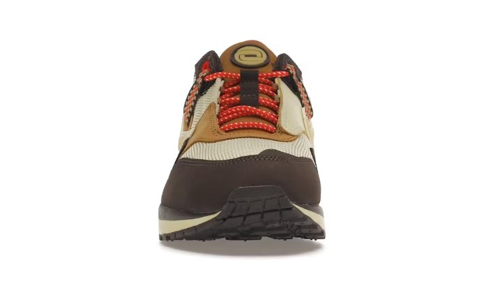 In collaborazione con l’etichetta discografica di Travis Scott, Cactus Jack, le Nike Air Max 1 Travis Scott Cactus Jack Brown si ispirano alle scarpe da trekking Nike ACG Pocket Knife. Hanno una tomaia in mesh a strati con rivestimenti in Durabuck tono su tono e loghi Swoosh invertiti. Il sistema di allacciatura Gillie richiama le trail runners. La suola Air completa il capolavoro.