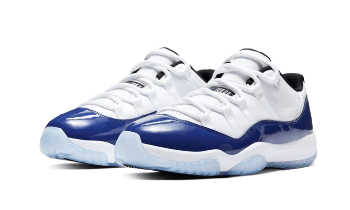 Il Air Jordan 11 Retro Low Concord Sketch segue il look del OG Concord, questa volta con una tomaia in vernice blu. Presenta una base sintetica bianca, un’intersuola bianca e una fodera interna nera. La suola presentata in una finitura Icy, abbinata alla precedente finitura blu. Il design rifinito con i soliti elementi di branding con un Jumpman nero sul tallone e un’etichetta che dice “Jumpman Jordan ” con un mini Jumpman.