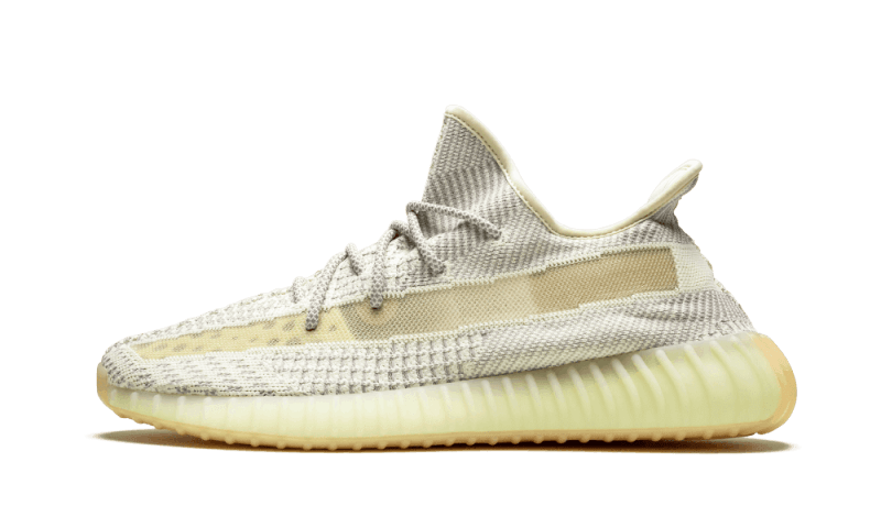 Il Yeezy Boost 350 V2 Lundmark,nella sua edizione Reflectiveedizione presenta una finitura riflettente sulla tomaia Primeknit. Questo permette alla coppia di brillare al buio. Come l’originale, conserva i suoi toni beige e bianco sporco.