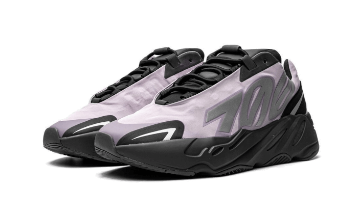 L’Adidas Yeezy 700 MNVN Geode presenta una base a rete mauve che corre per tutta la lunghezza della tomaia. Inserti riflettenti come il 700 sul lato adornano la tomaia. Una suola nera ammortizzata BOOST completa il design di Steven Smith.