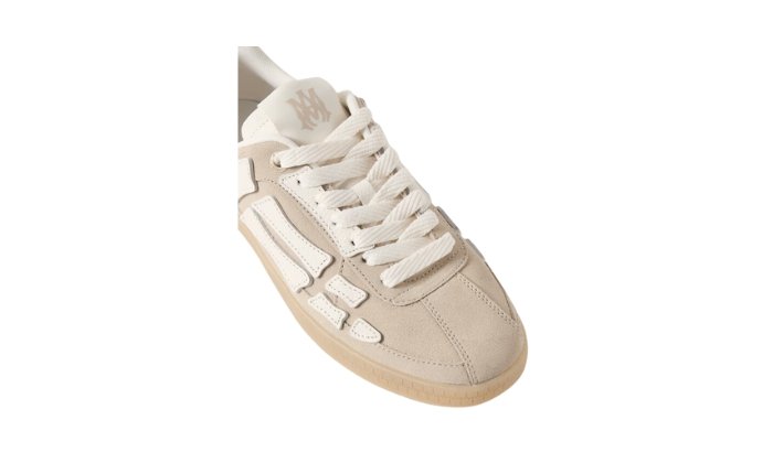 Le sneaker ‘Pacific Bones’ di AMIRI rappresentano la nuova generazione delle sue iconiche ‘Skel-Top’. Dettagliate con gli stessi applicazioni in pelle pieno fiore, sono realizzate in camoscio morbido e presentano suole intermedie in gomma con l’emblema distintivo ‘MA Icon’ impresso.