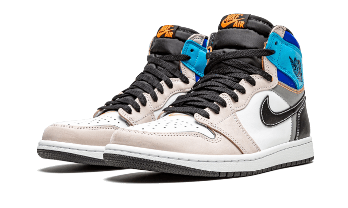 La Air Jordan 1 High OG Prototype presenta una tomaia in pelle bianca accoppiata con inserti in pelle beige sul davanti. Diversi accenti blu sul colletto contrastano con lo Swoosh, il tallone e i lacci neri. Ulteriori accenti bianchi possono essere visti sul toebox e sull’intersuola.