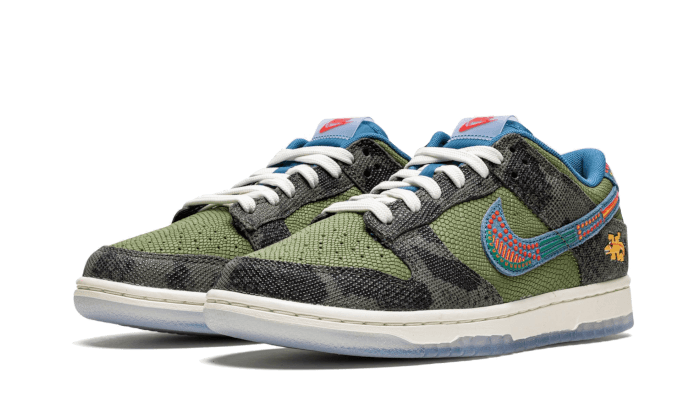Lร  Air Jordan 1 Mid Siere Familia indossa una parte superiore camoscio nero alle sovrapposizioni in pelle verniciata a Pattern maculato Tono su tono. La toebox รจ adornata Suede rosso circondato da denti bianchi sulla parte superiore del parametro di fango, che rappresentano il giaguaro, animale che simboleggia la forza e il potere nel Mitologia amerindiana. Il ricamo che adorna il Swoosh e il tallone e il logo Ali Sul collare si riferisce alle radici Aztechi E Maya del popolo messicano. La classica crema per intersuola con suola rossa arriva perfettamente la silhouette.