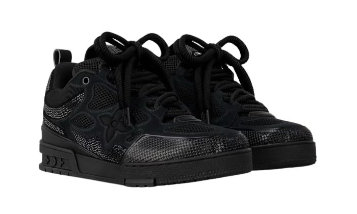 Questa straordinaria interpretazione delle LV Skate Trainers รจ ricoperta di cristalli Swarovskiโ„ข per un look nero scintillante. Ispirato alle scarpe da skate degli anni Novanta, questo modello si distingue per il colletto e la linguetta imbottiti e accentuati. Presenta numerosi dettagli iconici, tra cui un fiore Monogram sul lato e la scritta “Vuitton Since 1854” sul retro.