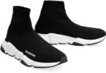 Sizing : Taille grand, prendre une taille plus petit que votre taille habituelle. Dans la grande tendance mondiale des sneakers chaussettes, Balenciaga a su imposer son style avec le modรจle iconique de sa gamme de baskets : la Speed Trainer. La maison propose une version minimaliste, devenue classique au fil du temps. La Balenciaga Speed Trainer White Black adopte un style sobre et minimaliste puisquโ€™elle ne possรจde pas lacets, ni quelconque ouverture par lโ€™avant. La chaussure est constituรฉe de polyamide noir, avec le branding Balenciaga sur lโ€™avant de la paire. On retrouve une semelle blanche et noire dotรฉe de la technologie Balenciaga ยซ No Memory ยป. Grรขce ร  ce modรจle star, la maison italienne Balenciaga sโ€™impose sur le marchรฉ de la socket sneakers, et conquis le cล“ur du public !