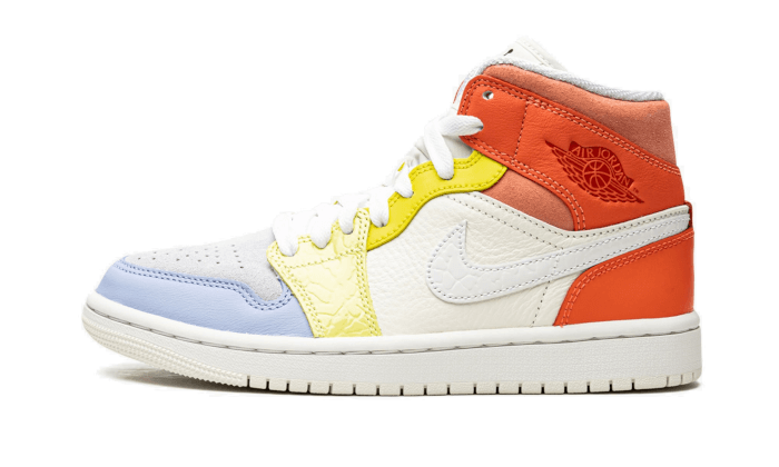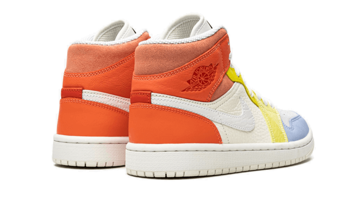 L? Air Jordan 1 Mid Al mio primo allenatore presenta una base in pelleseme Bianco, arricchito da diverse tonalit? di colori vivaci. C’? GIALLO sugli occhielli, blu sul toebox e a rose pompelmo sul tallone. UN Swoosh Il tono bianco su tono e l’intersuola bianca portanoeleganza al modello.