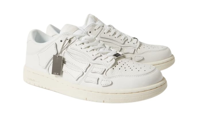 AMIRI ha trasformato i suoi slip-on ‘Skel Toe’ piรน venduti in sneaker a bassa altezza. Progettate con gli stessi applicazioni tagliati a mano lungo i lati, questa coppia ‘Skel-Top’ รจ realizzata con una combinazione di pelle liscia e strutturata e presenta collari imbottiti per un comfort ottimale.