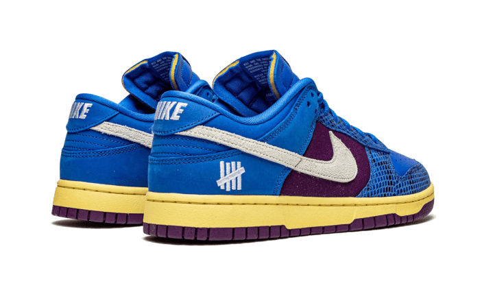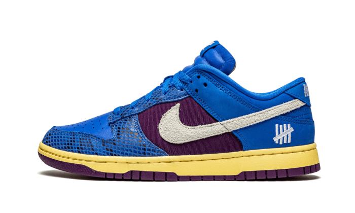 Lร Nike Dunk Low Undefeated 5 su di esso Sfoggia un’asta tessile viola su cui si sovrappongono i pannelli di pelle blu elettrico, oltre a un finale rettiliano Sul guardia del fango. Distinguiamo anche il logo 5 White Strikes sulla lingua e sul tallone, nonchรฉ uno swoosh laterale nella pelle scamosciata abbinata. Una suola Vintage ?, abbinato a una suola Viola, porta l’ultimo tocco.