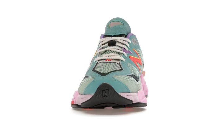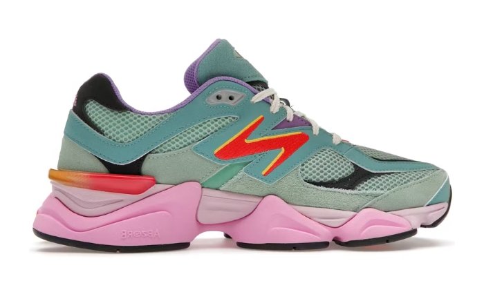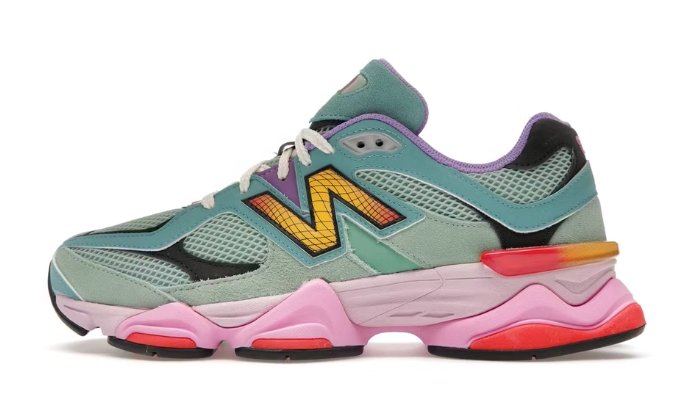 Le New Balance 9060 sfoggiano una miscela di tonalitร menta che adorna lo strato base in mesh e le sovrapposizioni in pelle scamosciata, con una delicata sfumatura di verde acqua che si estende sulle fasce in nubuck nella parte superiore. La fodera interna presenta un accattivante tocco di lavanda, abbinato a lacci in nylon color crema. L’intersuola ABZORB รจ una vera opera d’arte, con una serie di sfumature che spaziano dal rosa al rosso lava, ricordando la gomma da masticare, e si trova proprio sotto il logo N giallo-rosso che occupa la parte centrale della suola.